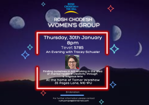 Looking forward to our next meeting on Thursday, 30 January at the home of Tamar Warshaw, 35 Pages Lane, N10 1PU.  Tracey Schueler will talk under the title “Finding Ourselves in Art: Working in the area of mental health & creativity through a religious lens”.