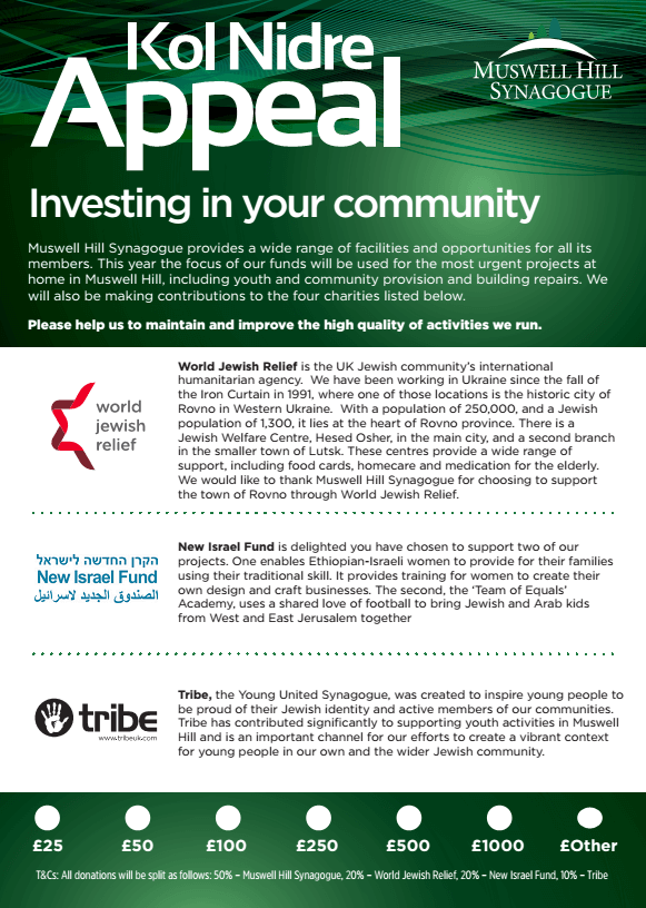 KOL NIDRE APPEAL 2015 – INVESTING IN YOUR COMMUNITY Muswell Hill Synagogue provides a wide range of facilities and opportunitie… read more -