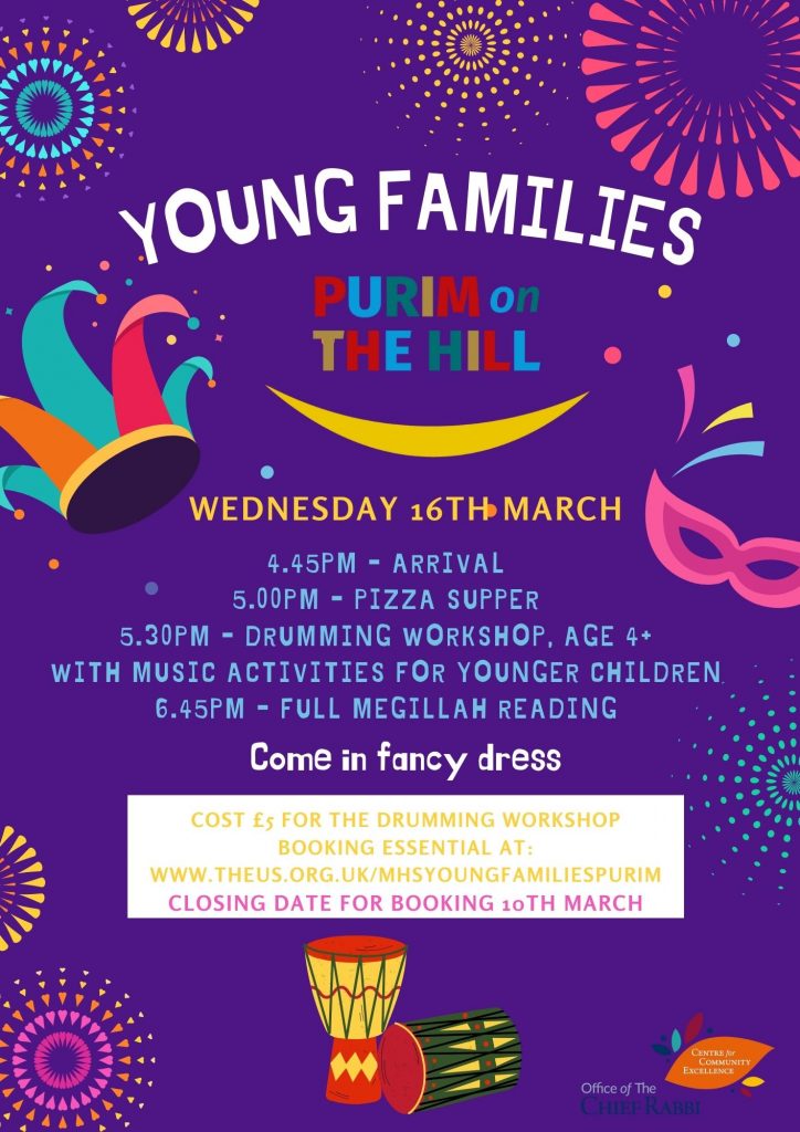 Archived: Young Families Purim Party 28 February 2022 If you would like to book for this event please click here.